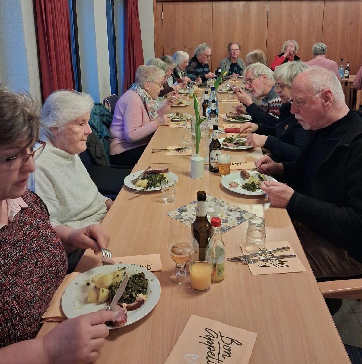 Die Atmosphäre war herzlich und ungezwungen. Zwischen dampfenden Tellern mit Grünkohl, Pinkel, Kasseler und Speck entwickelten sich lebhafte Gespräche. Es wurde erzählt und gelacht und sich erinnert an gelungene Veranstaltungen, schöne Begegnungen und besondere Momente, die das vergangene Jahr geprägt haben.