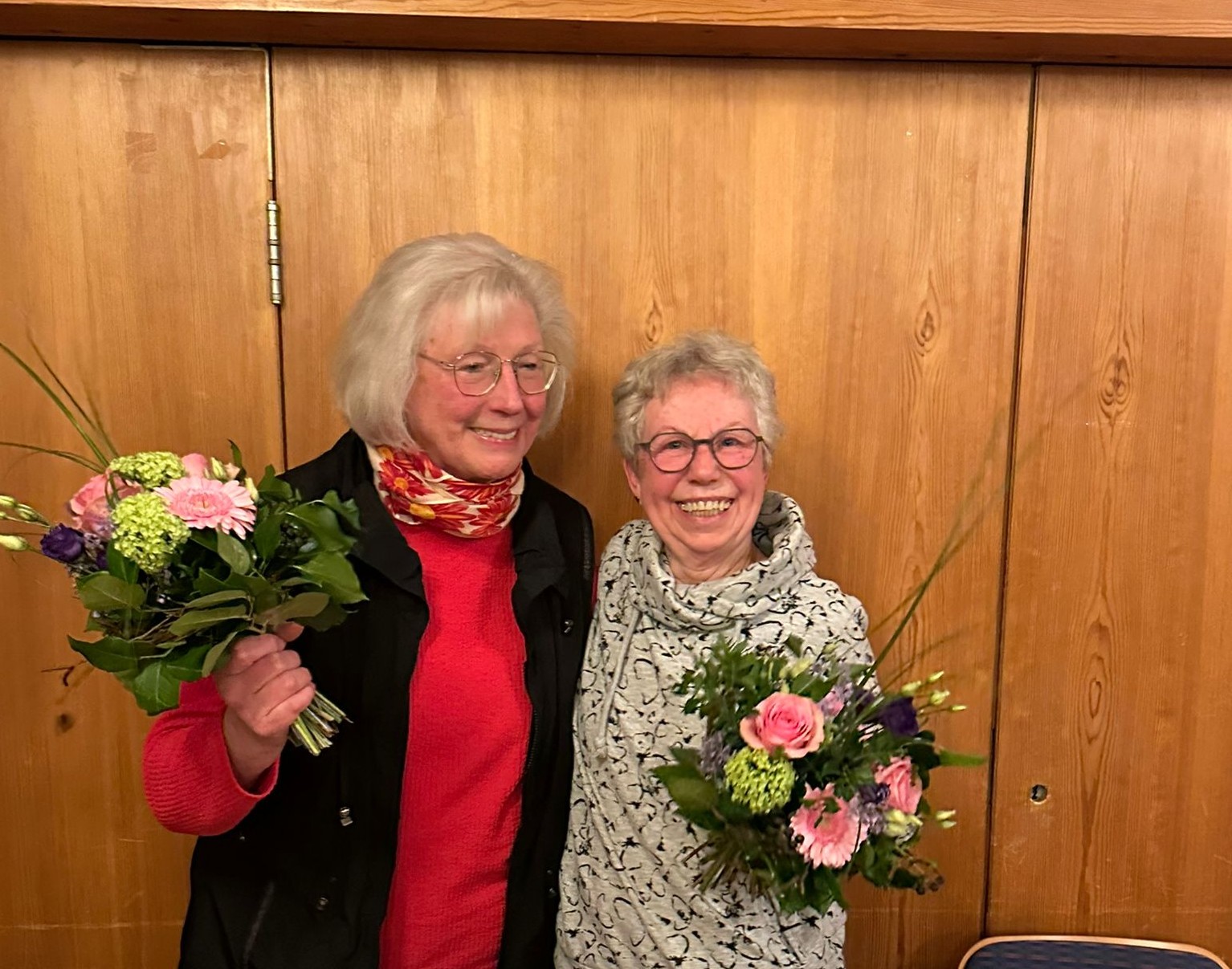 Ein besonderer Höhepunkt des Abend war der Dank an die Initiatorinnen der Unternehmungen der Gemeinschaft, Hildegard Lüken und Elisabeth Funke, die mit viel Einsatz und Organisationstalent die Treffen immer vorbereiten. Als Zeichen der Anerkennung wurde ihnen ein Blumenstrauß überreicht begleitet von lieben Worten des Dankes und herzlichem Applaus.